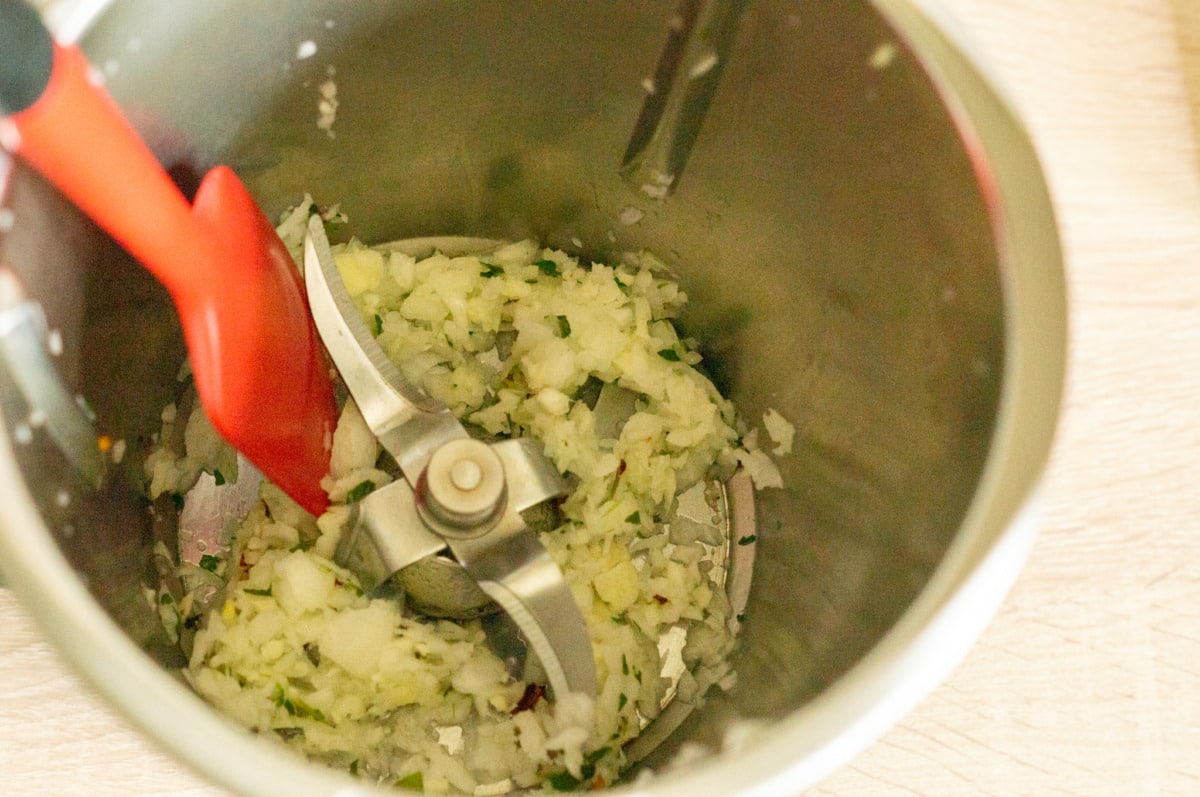 Web Öl zugeben und 2 Min. Stufe 8 zerkleinern. Dann gemäß Rezept weiterverarbeiten.