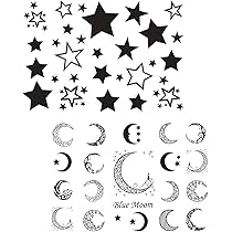 Nirbffo Black Star Moon Tattoo Sticker Waterproof Black Sexy Fake Tattoo Art Body Face Ears Modern Tattoo For Women Men Sticker 6 Sheets Amazon De Beauty